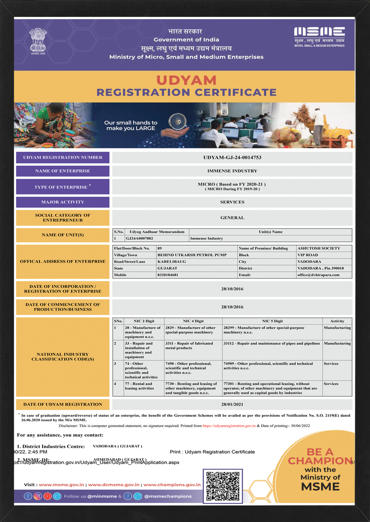 Registration Certificate